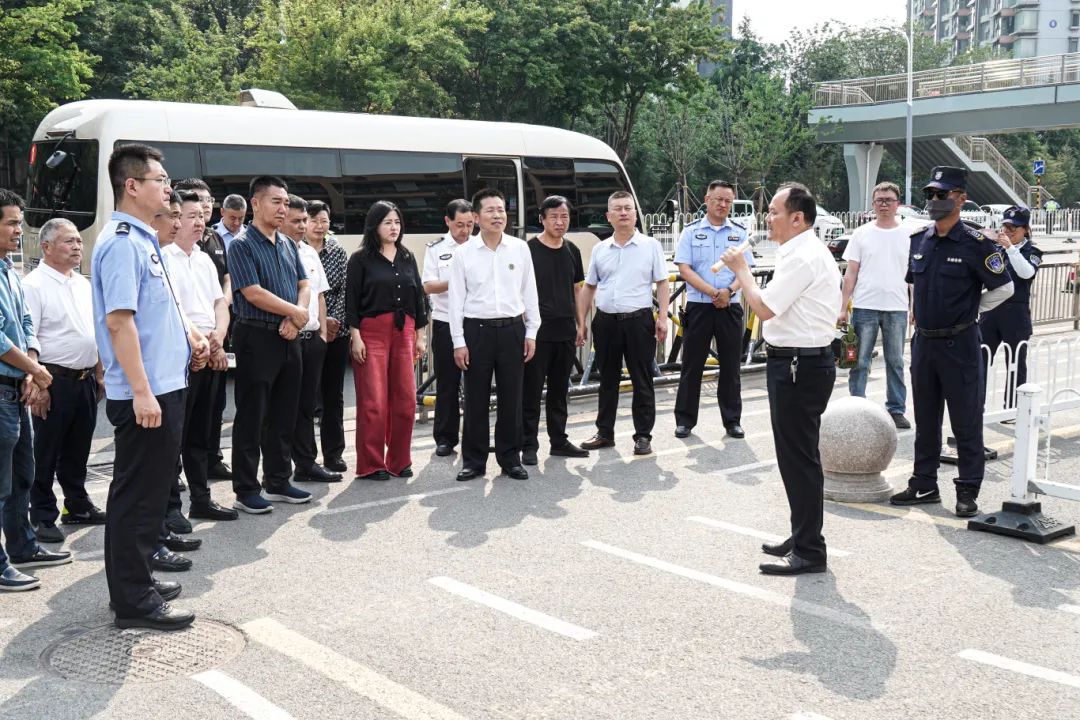 在金盾小学门前,企业家代表们详细听取了学校相关负责同志关于“警校家+”联合护学机制的介绍,了解了临沂交警直属三大队联合多部门,凝聚社会力量,立足各自职能,形成工作合力,切实解决学校周边交通拥堵难题,共同守护学生出行安全。