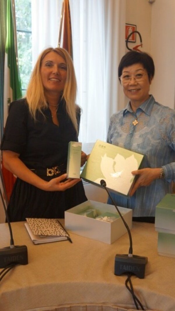 百雀羚东方礼礼盒赠予意大利诺阿雷市政府
