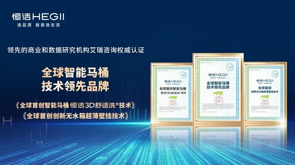 “无水箱超薄壁挂”技术破解空间普惠难题,“3D舒适洗”技术重塑清洗体验标准,N系列与R系列双双获得权威认可,是恒洁产品力的有力证明。获得艾瑞咨询授予的“全球智能马桶技术领先品牌”认证,更彰显了恒洁的系统性技术储备与全产业链影响力。