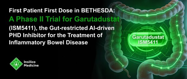 由生成式人工智能驱动的临床阶段生物医药科技公司英矽智能(Insilico Medicine)今日宣布,公司已在一项名为BETHESDA的IIa期临床试验(NCT07265570)中完成其创新PHD抑制剂ISM5411的首例受试者给药。该创新候选药物由英矽智能自有生成式AI平台Pharma.AI辅助开发,具有肠道限制性,用于炎症性肠病(IBD)的治疗,其通用名Garutadustat近期获得美国通用名委员会(USAN)正式批准。