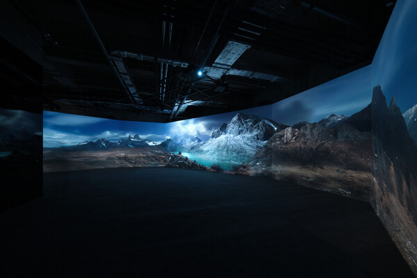 通过巨型曲面屏幕与富士胶片4K投影机的多机联动,构建出一个270°环绕的沉浸式空间,实现了五面墙体的巧妙衔接与超广视角投影,营造出一种无限延伸的错觉。合作摄影师使用富士胶片GFX一亿像素中画幅数码相机在全球多地捕捉的壮丽影像在此进行沉浸式展示,以前所未有的规模与细节呈现于观众眼前。
