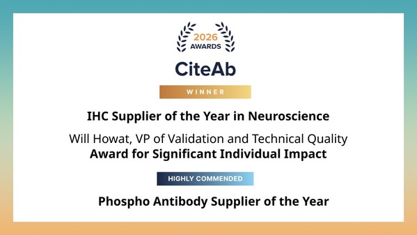 丹纳赫(Danaher)旗下公司、全球知名的生命科学试剂与工具供应商 Abcam 3月17日宣布,公司验证与技术质量副总裁 Will Howat 博士 荣获 CiteAb 2026年度"卓越个人影响力奖"。同时,Abcam 还被评选为 "神经科学领域 IHC 年度供应商" 并在"磷酸化抗体年度供应商奖"中获得高度评价。截至目前,Abcam 已连续十二年获得 CiteAb 奖项认可。