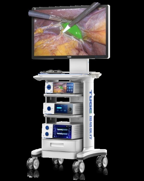 图为图格医疗自主研发的“4K+3D+荧光三合一内窥镜摄像系统”